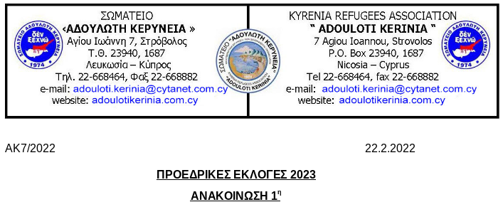 Για ενημέρωση από την πλευρά μας καλούμε τον κόσμο να παρακολουθεί την Ιστοσελίδα μας, www.adoulotikerinia.com.cy και το Face Book το οποίο είναι συνδεδεμένο με την Ιστοσελίδα.
