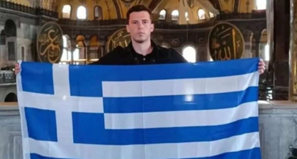Ένας Έλληνας τουρίστας, χθες Σάββατο (16/3) άνοιξε την ελληνική σημαία μέσα στην Αγία Σοφία και φωτογραφήθηκε με αυτή.