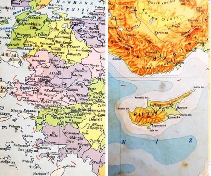 Επί πολλές δεκαετίες, η νεολαία της Τουρκίας έβλεπε στον Τουρκικό Άτλαντα τα σύνορα της Τουρκίας με την Ελλάδα και την Κύπρο, όπως πραγματικά είναι: