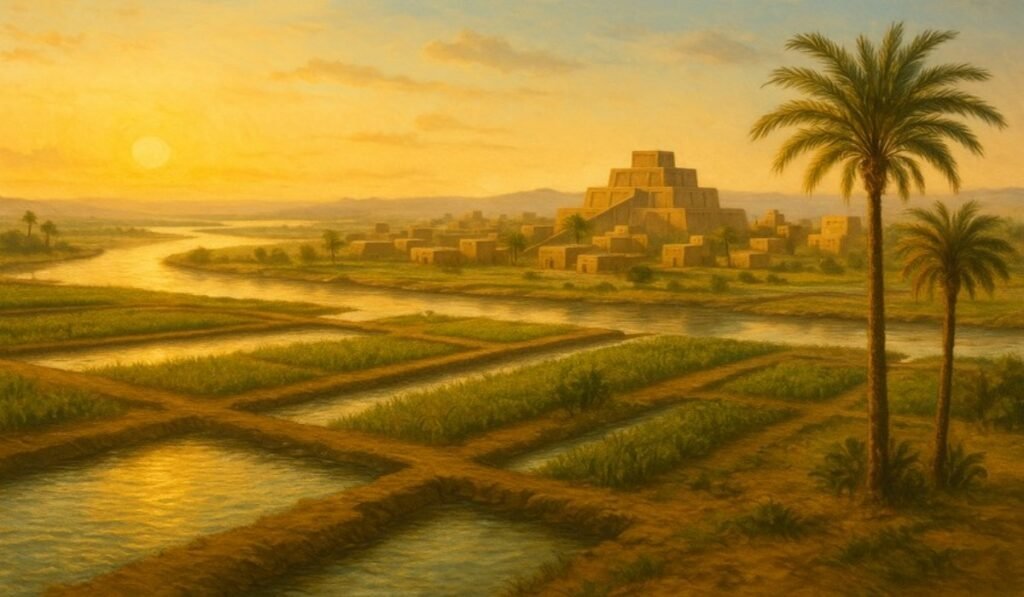 Ανάμεσα στα 7.000 και 5.000 χρόνια πριν, ο Περσικός Κόλπος εκτεινόταν πολύ πιο βαθιά στην ενδοχώρα. Οι παλίρροιες έσπρωχναν γλυκό νερό στα κάτω ρου των ποταμών Τίγρη και Ευφράτη, σχηματίζοντας ένα φυσικό, αυτορυθμιζόμενο σύστημα άρδευσης — ένα θαύμα οικολογικής μηχανικής που η φύση πρόσφερε στους πρώτους γεωργούς.