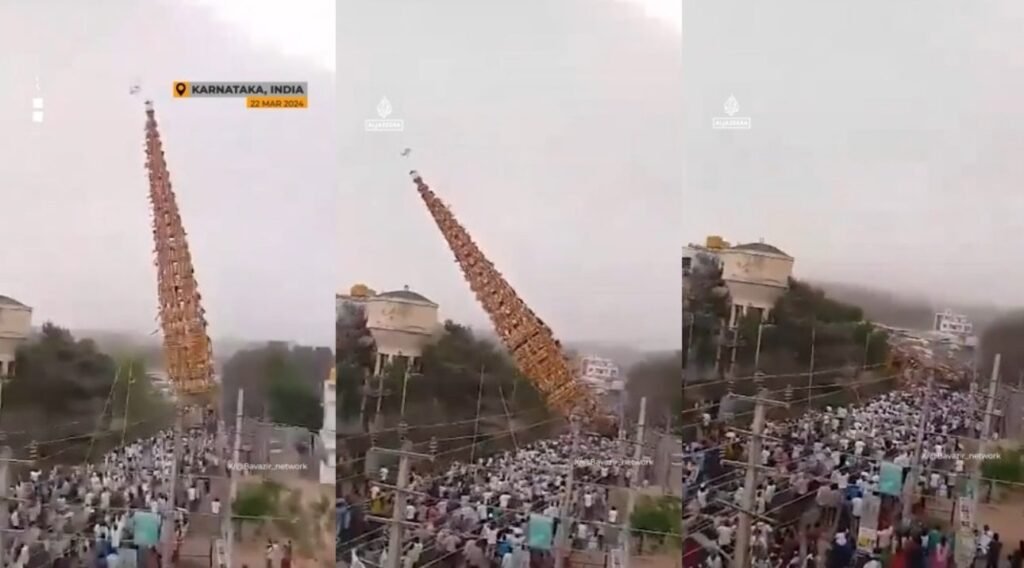 Τραγωδία στην Ινδία καθώς αυτοσχέδιος πύργος ύψους 30 μέτρων κατέρρευσε κατά τη διάρκεια θρησκευτικού φεστιβάλ στην Καρνατάκα, προκαλώντας τον θάνατο δύο ατόμων και τον τραυματισμό πολλών άλλων.